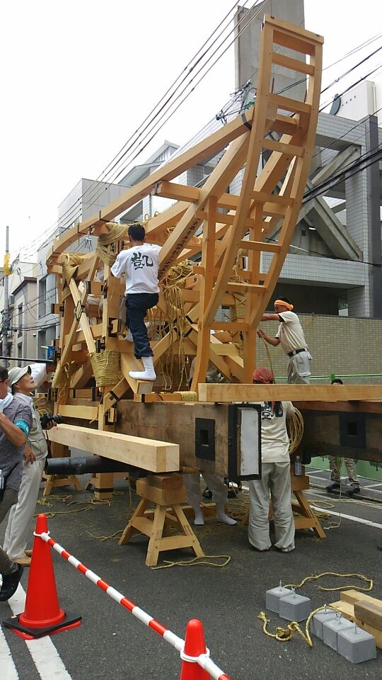 祇園祭前祭り巡行が終わりました。 祇園祭りが終わったかのような感じですが、違うんですよね~ (京都に住んでいるのに)調べてみると7月1日から31日まである長いお祭りだとか・・。 今年は後祭巡行と分かれたので、少し人も少なかったのかな。 さっき、鉾町を歩いていたら、鉾の解体に携わる人たちでいっぱいでした。 解体されていく鉾を写真に収める人やスケッチする人もいて・・・。 あれって釘を一本も使っていないらしい事だけは、聞いた記憶があります。 ホントすごい、人間って。 1100年も前から続いているお祭りなんだとか・・・。 凄いです、京都って!!