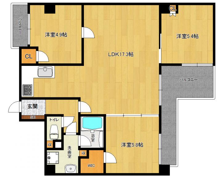 上層階 東南角部屋 日当り・通風良好 3LDK分譲賃貸マンション