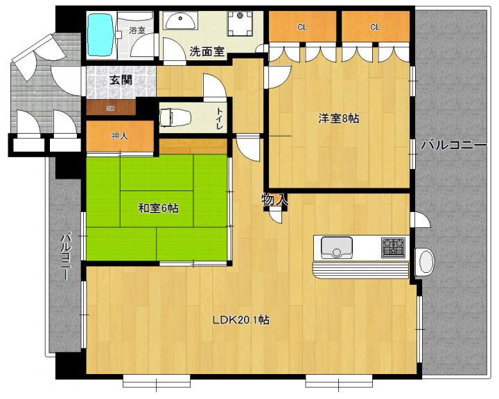 3面採光・両面バルコニー