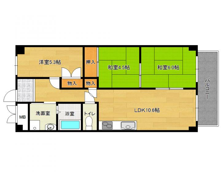 | 間取り詳細 | 和6.0帖 和4.5帖 洋5.3帖 LDK10.6帖 |