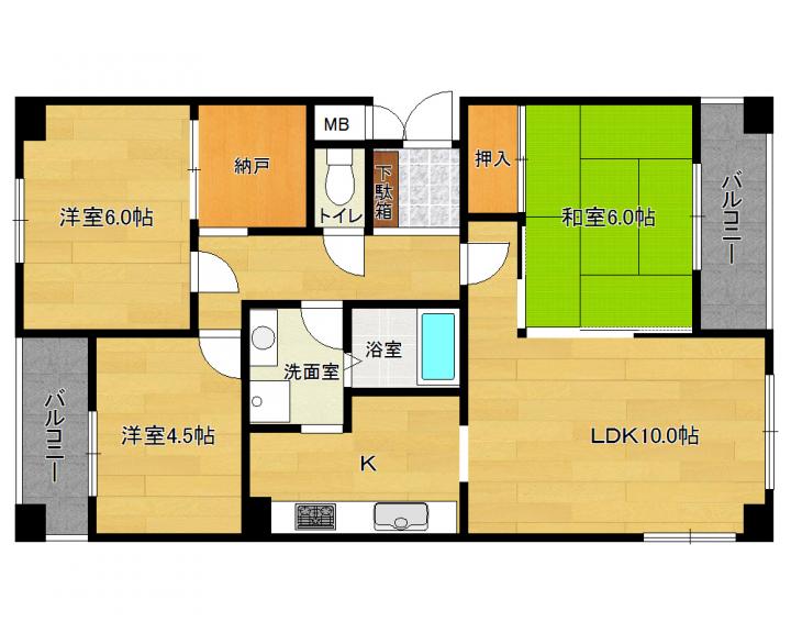 | 間取り詳細 | 和6.0帖 洋6.0帖 洋4.5帖 LD10.5帖 K |