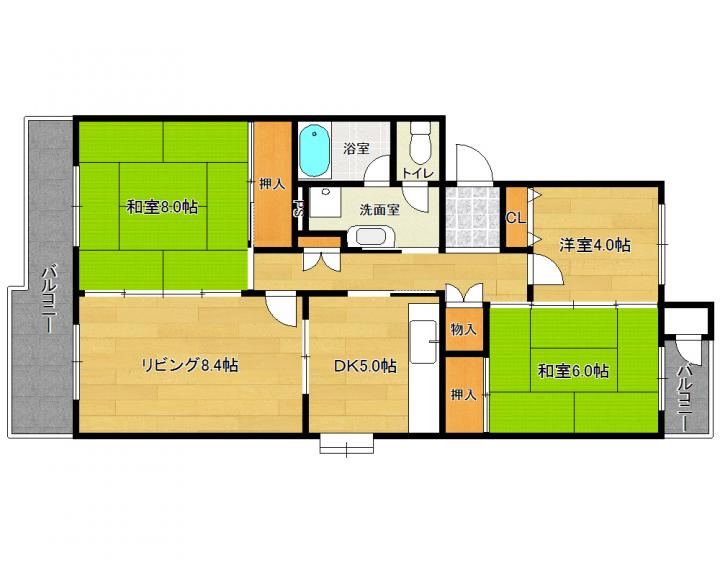 | 間取り詳細 | 和8.0帖 和6.0帖 洋4.0帖 L8.4帖 DK5.0帖 |