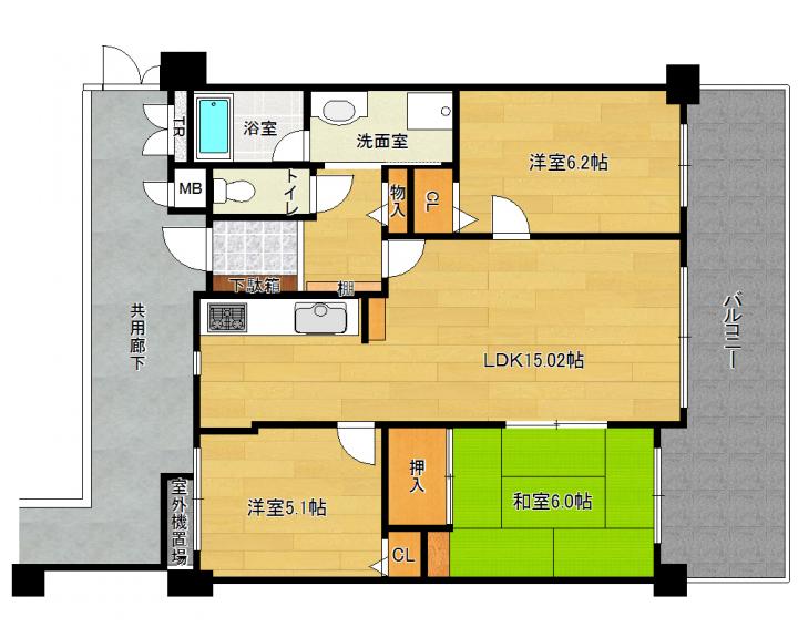 | 間取り詳細 | 和6.0帖 洋6.2帖 洋5.1帖 LDK14.7帖 |