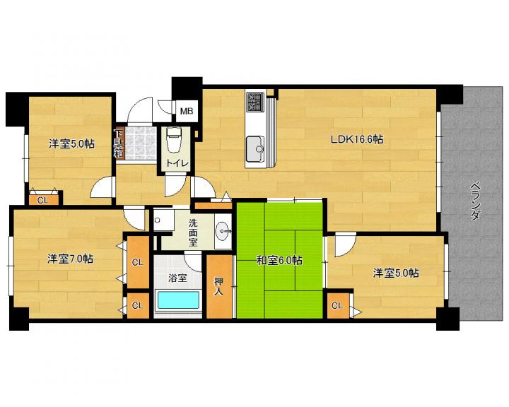 | 間取り詳細 | 和6.0帖 洋7.0帖 洋5.0帖 洋5.0帖 LDK16.6帖 |