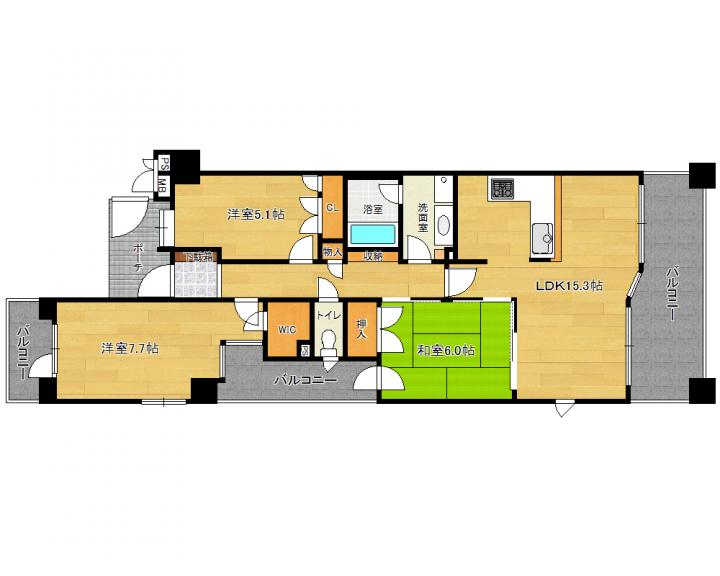 | 間取り詳細 | 和6.0帖 洋7.7帖 洋5.1帖 LDK15.3帖 |