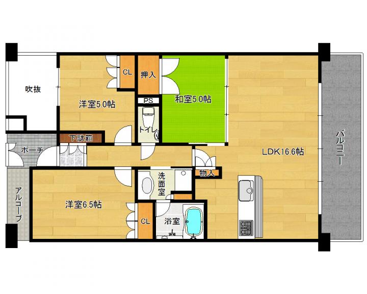 | 間取り詳細 | 和5.0帖 洋6.5帖 洋5.0帖 LDK16.6帖 |