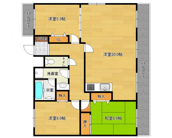 | 間取り詳細 | 和6.0帖 洋5.7帖 洋5.3帖 LDK20.0帖 |