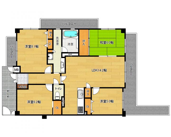 | 間取り詳細 | 和6.0帖 洋8.1帖 洋6.2帖 洋5.0帖 LDK14.2帖 |