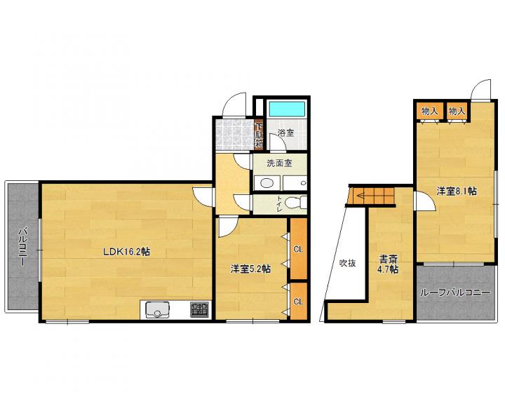 | 間取り詳細 | 洋8.1帖 洋5.2帖 LDK16.2帖 書斎4.7帖 |