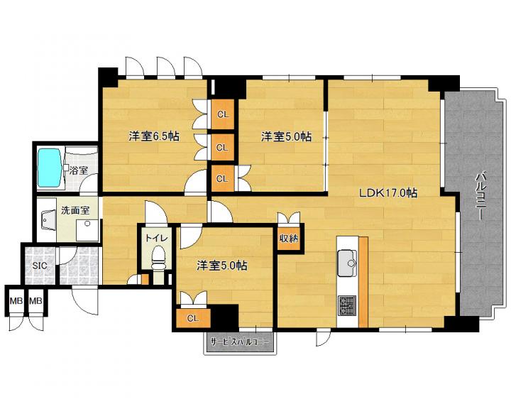 | 間取り詳細 | 洋6.5帖 洋5.2帖 洋5.0帖 LDK17.0帖 |