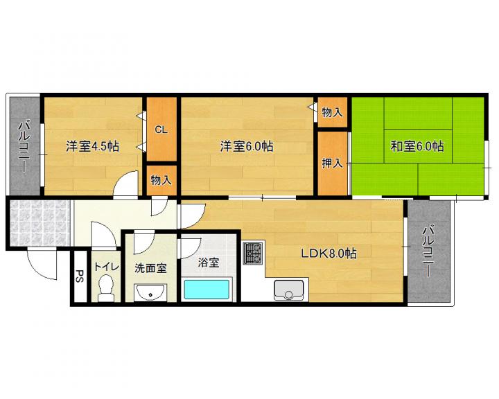 | 間取り詳細 | 和6.0帖 洋6.0帖 洋4.5帖 LDK8.0帖 |