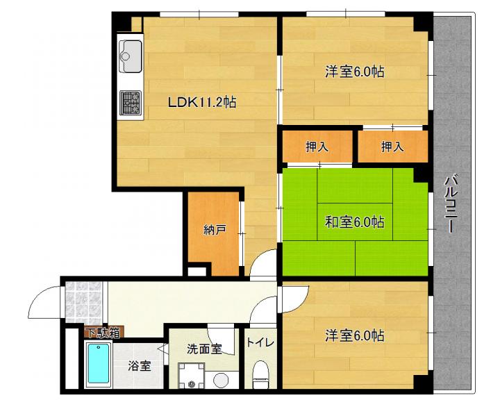 | 間取り詳細 | 和6.0帖 洋6.0帖 洋6.0帖 LDK11.2帖 |