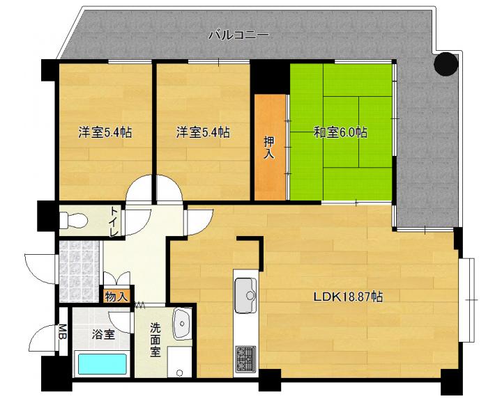 | 間取り詳細 | 和6.0帖 洋5.4帖 洋5.4帖 LDK18.6帖 |
