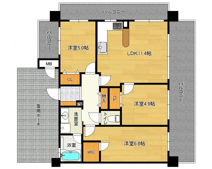 洋6.8帖 洋5.0帖 洋4.9帖 LDK11.4帖