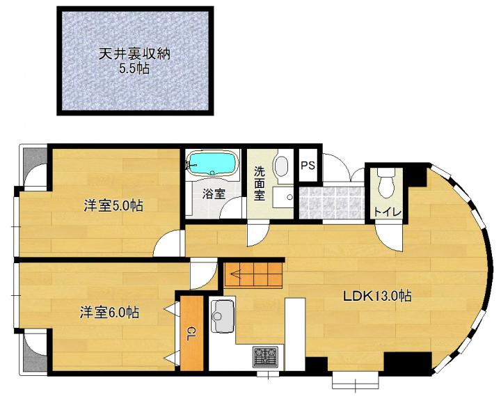 | 間取り詳細 | 洋6.0帖 洋5.0帖 LDK13.0帖 S5.5帖 |