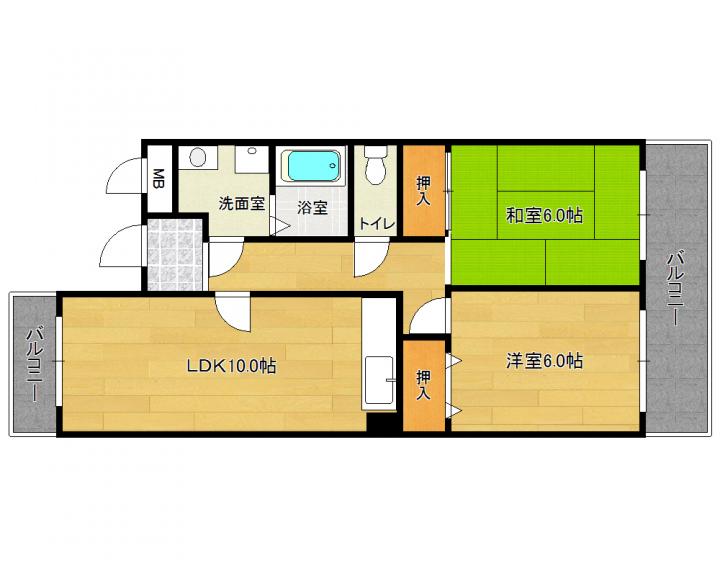 | 間取り詳細 | 和6.0帖 洋6.0帖 LDK10.0帖 |