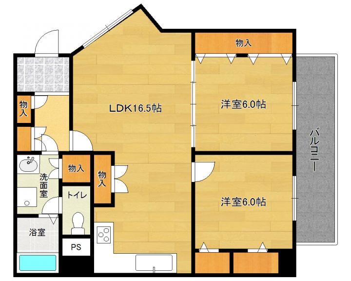 | 間取り詳細 | 洋6.0帖 洋6.0帖 LDK16.5帖 |