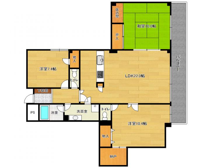 | 間取り詳細 | 和10.0帖 洋10.4帖 洋7.4帖 LDK22.0帖 |