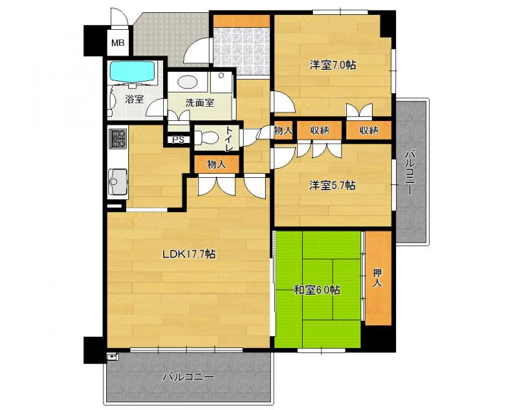 | 間取り詳細 | 和6.0帖 洋7.0帖 洋5.7帖 LDK17.7帖 |