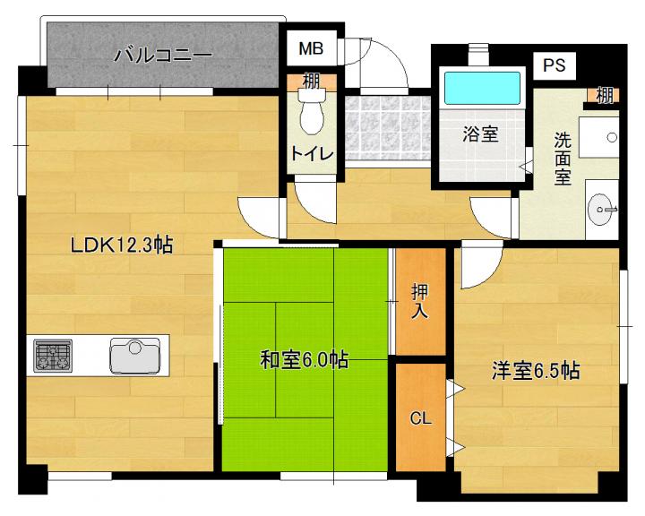 | 間取り詳細 | 和6.0帖 洋6.5帖 LDK12.3帖 |