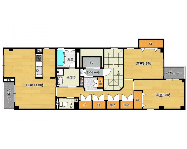 | 間取り詳細 | 洋6.8帖 洋6.2帖 LDK14.0帖 |