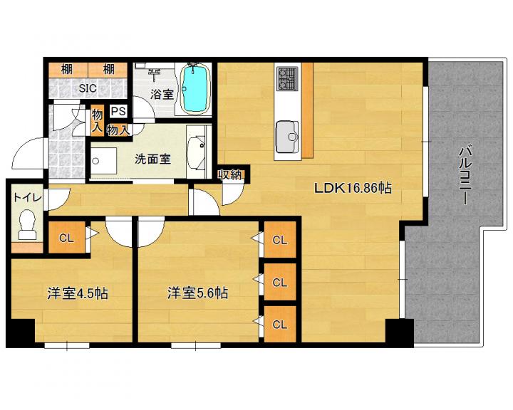 | 間取り詳細 | 洋5.6帖 洋4.5帖 LDK16.86帖 |