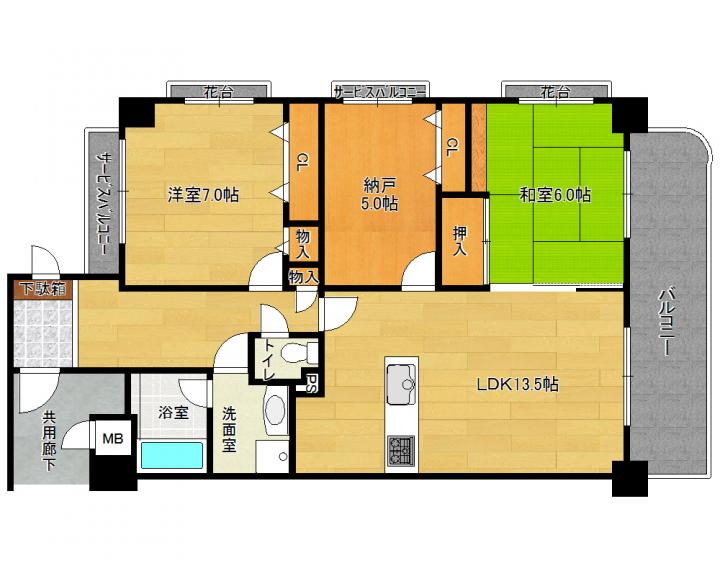 | 間取り詳細 | 和6.0帖 洋7.0帖 納戸5.0帖 LDK13.5帖 |