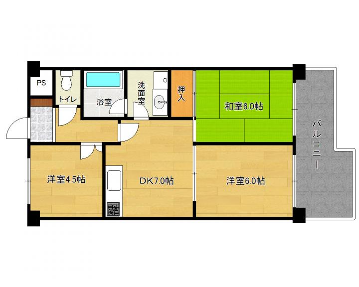 | 間取り詳細 | 和6.0帖 洋6.0帖 洋4.5帖 LD7.0帖 |