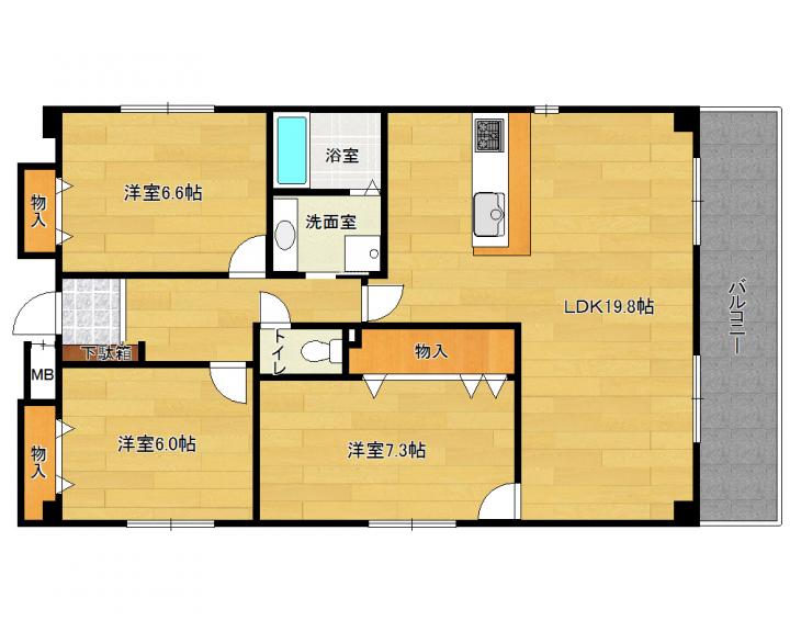 | 間取り詳細 | 洋7.3帖 洋6.6帖 洋6.0帖 LDK19.8帖 |