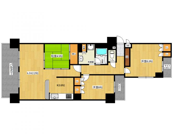 | 間取り詳細 | 洋6.3帖 洋6帖 和4.5帖 LDK16帖 |