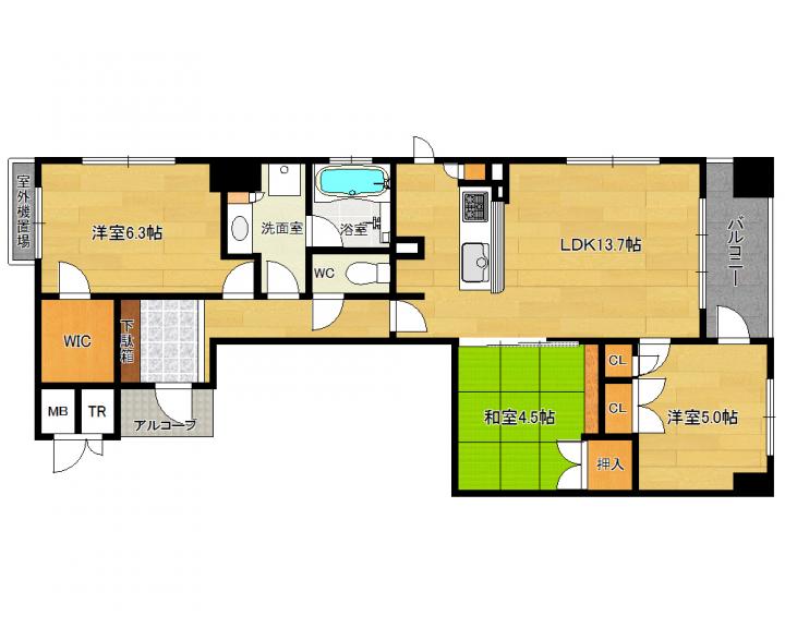 | 間取り詳細 | 和4.5帖 洋6.3帖 洋5.0帖 LDK13.7帖 |
