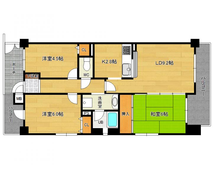 | 間取り詳細 | 和6.0帖 洋6.0帖 洋4.5帖 LDK9.2帖 |