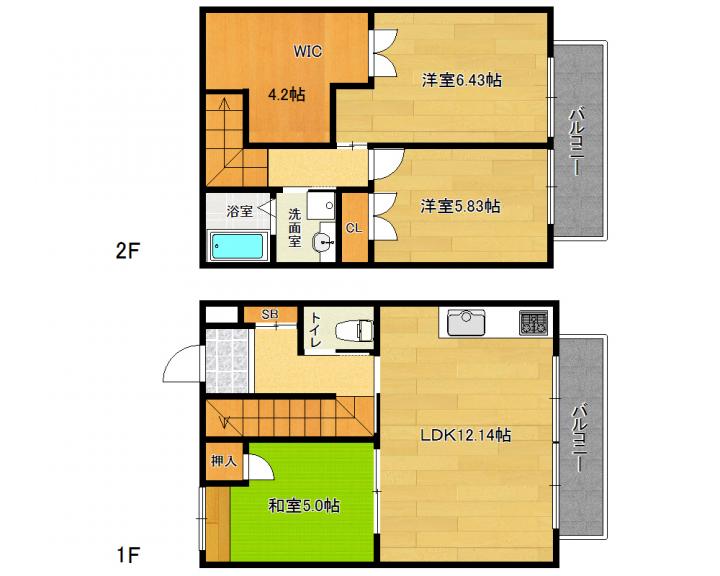 | 間取り詳細 | 和5.0帖 洋6.43帖 洋5.83帖 LDK12.14帖 |