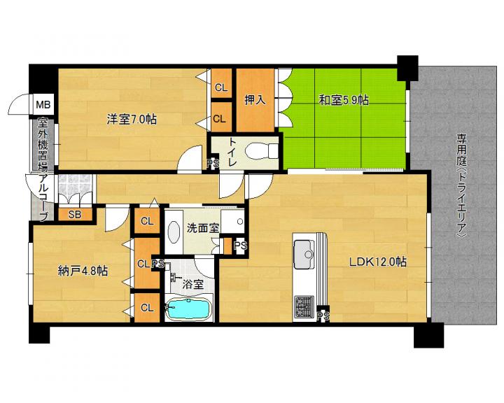 | 間取り詳細 | 和5.9帖 洋7.0帖 LDK12.0帖 F4.8帖 |