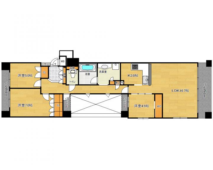 | 間取り詳細 | 洋7.0帖 洋5.0帖 洋4.5帖 LDK16.7帖 |