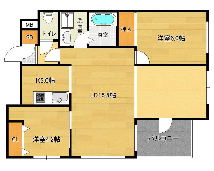 | 間取り詳細 | 洋6.0帖 洋4.2帖 LD15.5帖 K3.0帖 |