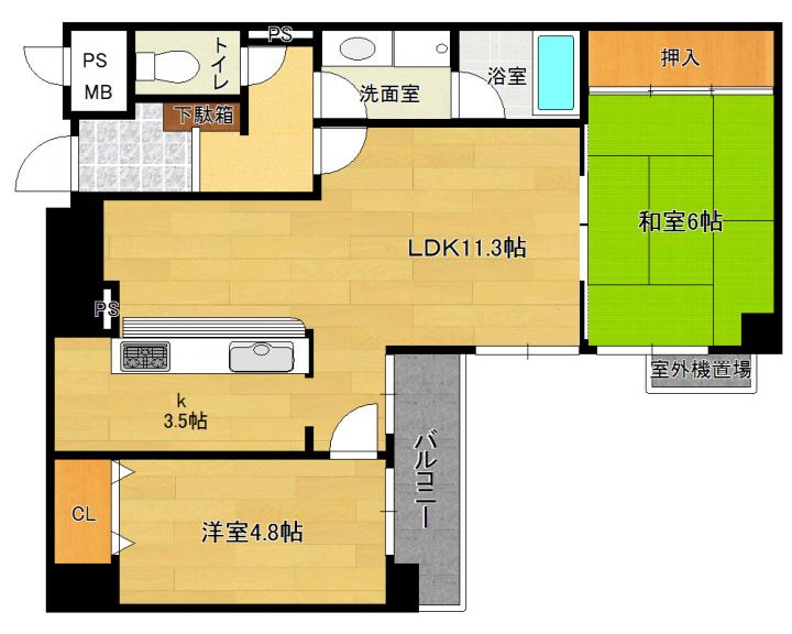 | 間取り詳細 | 和6.0帖 洋4.8帖 LD11.3帖 K3.5帖 |
