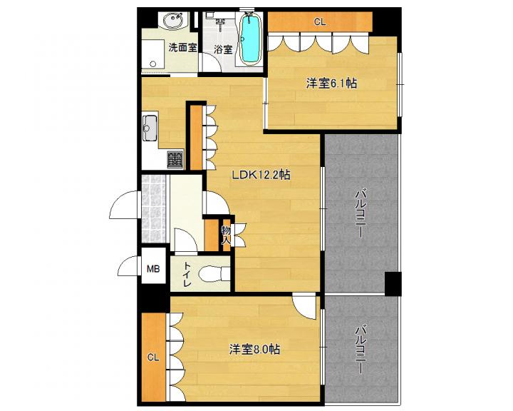 | 間取り詳細 | 洋8.0帖 洋6.1帖 LDK12.2帖 |