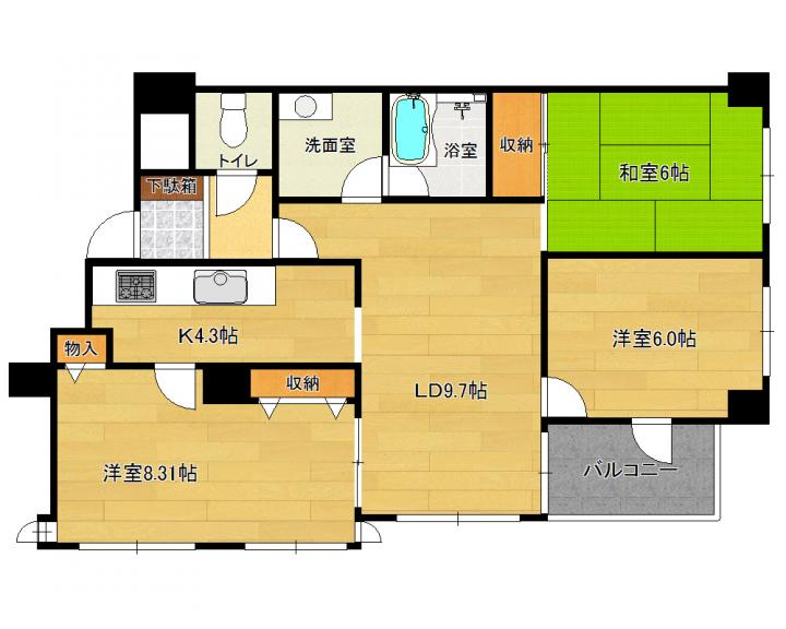 | 間取り詳細 | 和6.0帖 洋8.3帖 洋6.0帖 LD9.7帖 K4.3帖 |