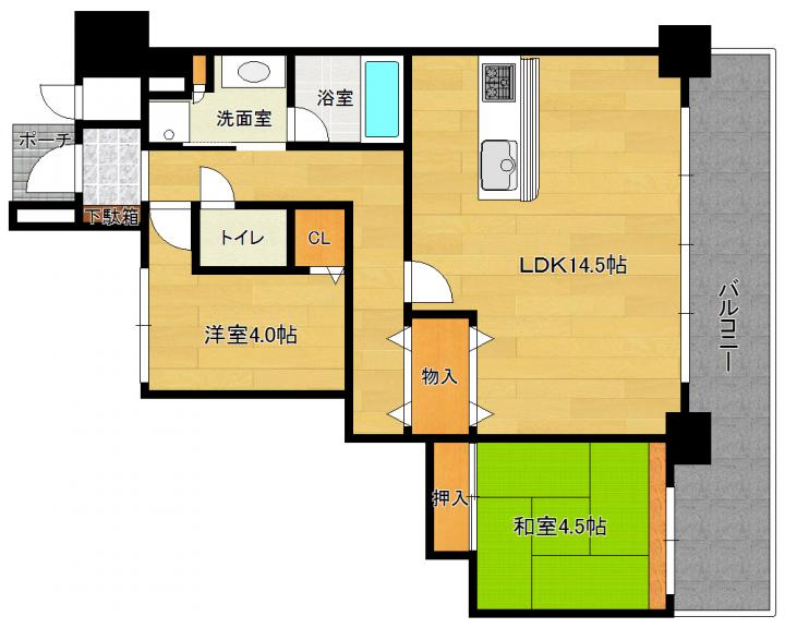 | 間取り詳細 | 和4.5帖 洋4.0帖 LDK14.5帖 |