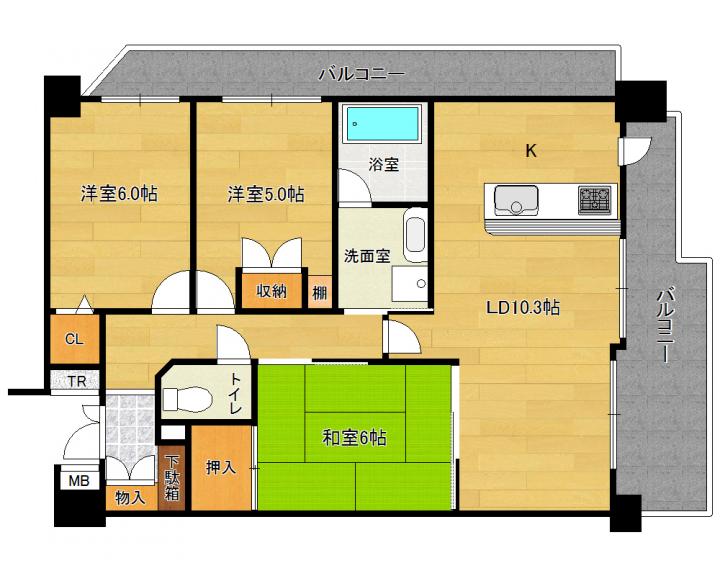 | 間取り詳細 | 和6.0帖 洋6.0帖 洋5.0帖 LDK10.3帖 K4.7帖 |