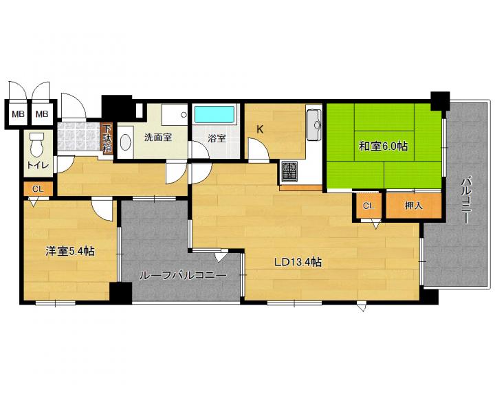 | 間取り詳細 | 和6.0帖 洋5.4帖 LDK13.4帖 |
