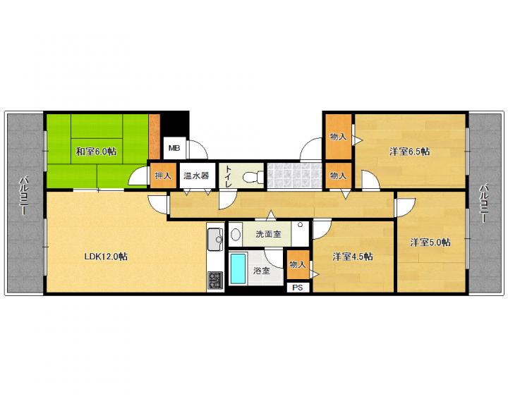 | 間取り詳細 | 和6.0帖 洋6.5帖 洋5.0帖 洋5.0帖 洋4.5帖 LDK12.0帖 |
