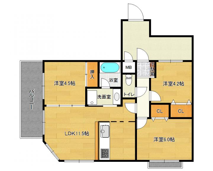 | 間取り詳細 | 洋6.0帖 洋4.5帖 洋4.2帖 LDK11.5帖 |