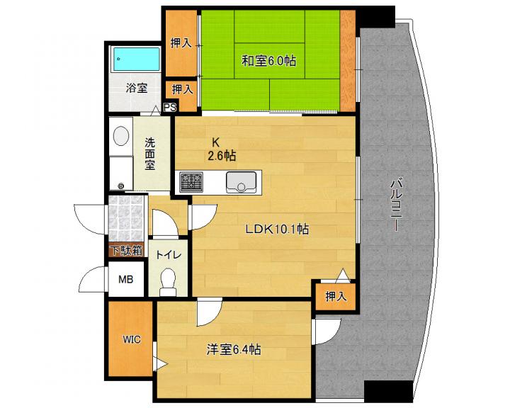 | 間取り詳細 | 和6.0帖 洋6.4帖 LD10.1帖 K2.6帖 |