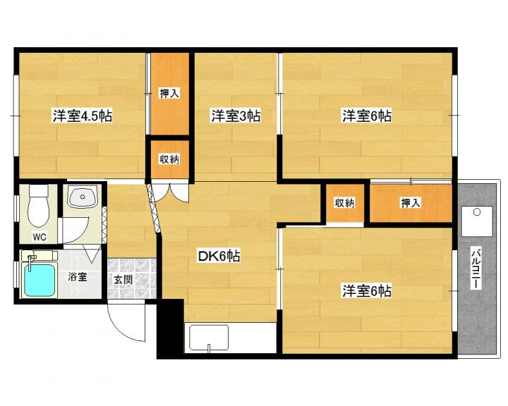 | 間取り詳細 | 洋室 6帖 洋室 6帖 洋室 4.5帖 洋室 3帖 DK 6帖 |
