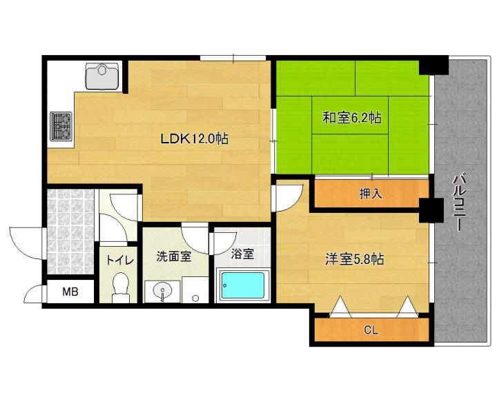 | 間取り詳細 | 和6.2帖 洋5.8帖 LDK12.0帖 |