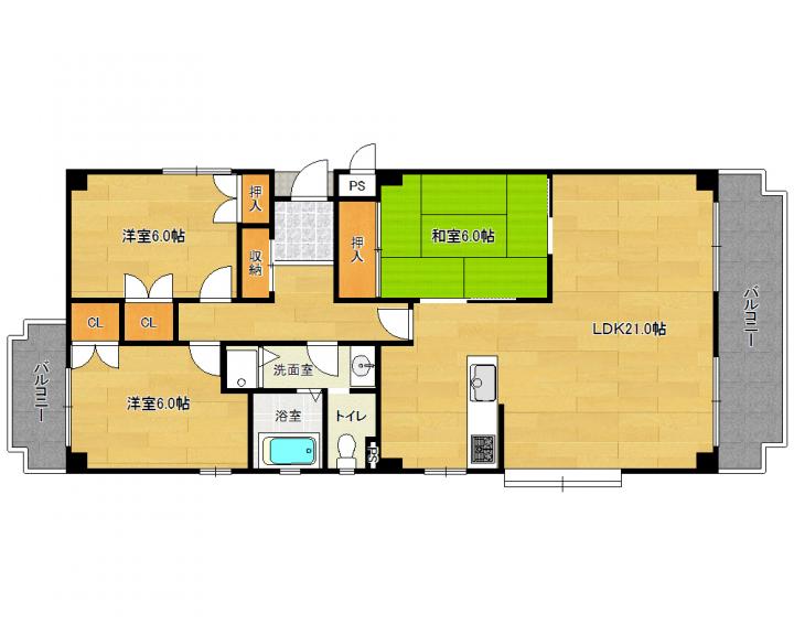 | 間取り詳細 | 和6.0帖 洋6.0帖 洋6.0帖 LDK21.0帖 |