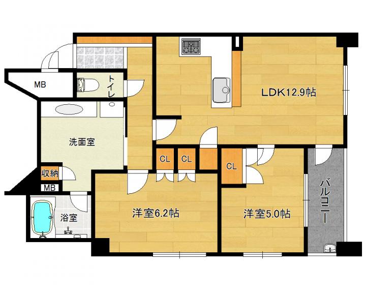 | 間取り詳細 | 洋6.2帖 洋5.0帖 LDK12.9帖 |