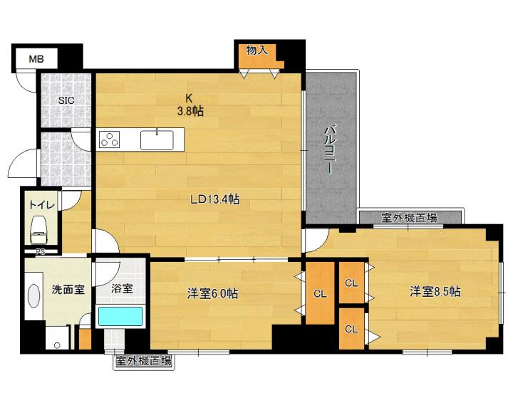 | 間取り詳細 | 洋8.5帖 洋6.0帖 LD13.4帖 K3.8帖 |